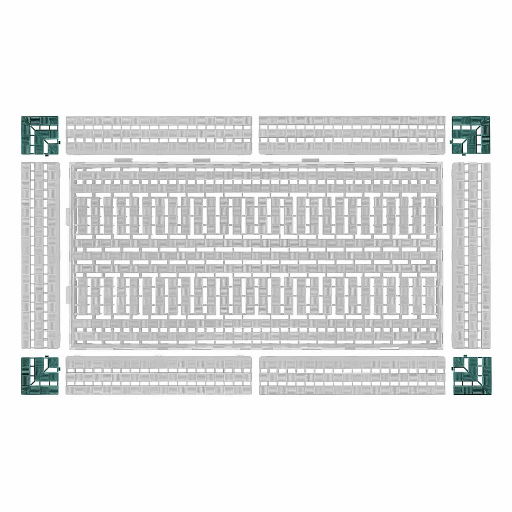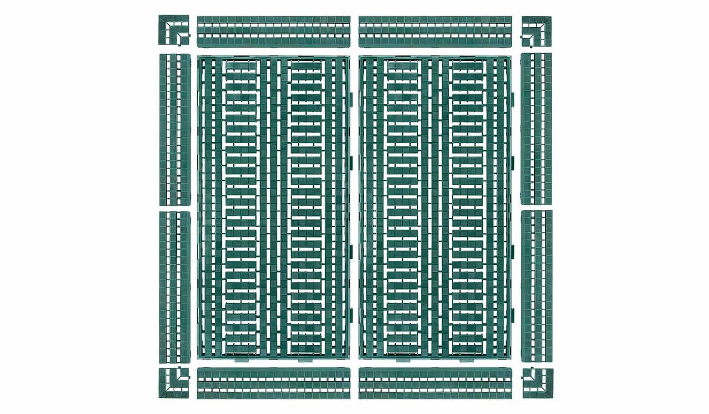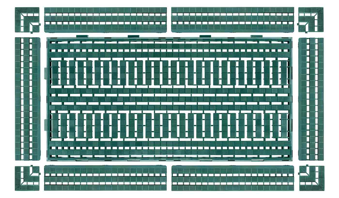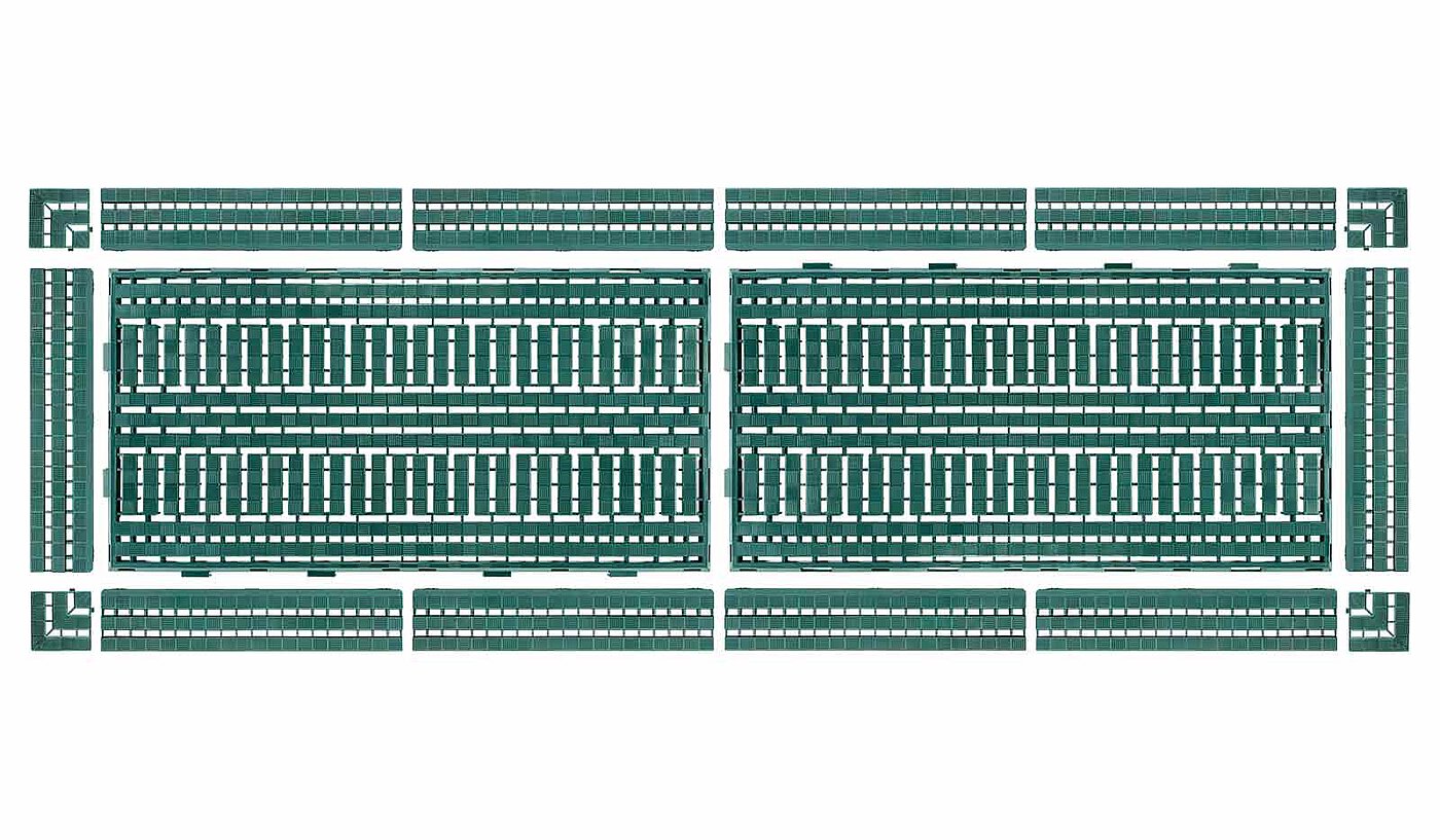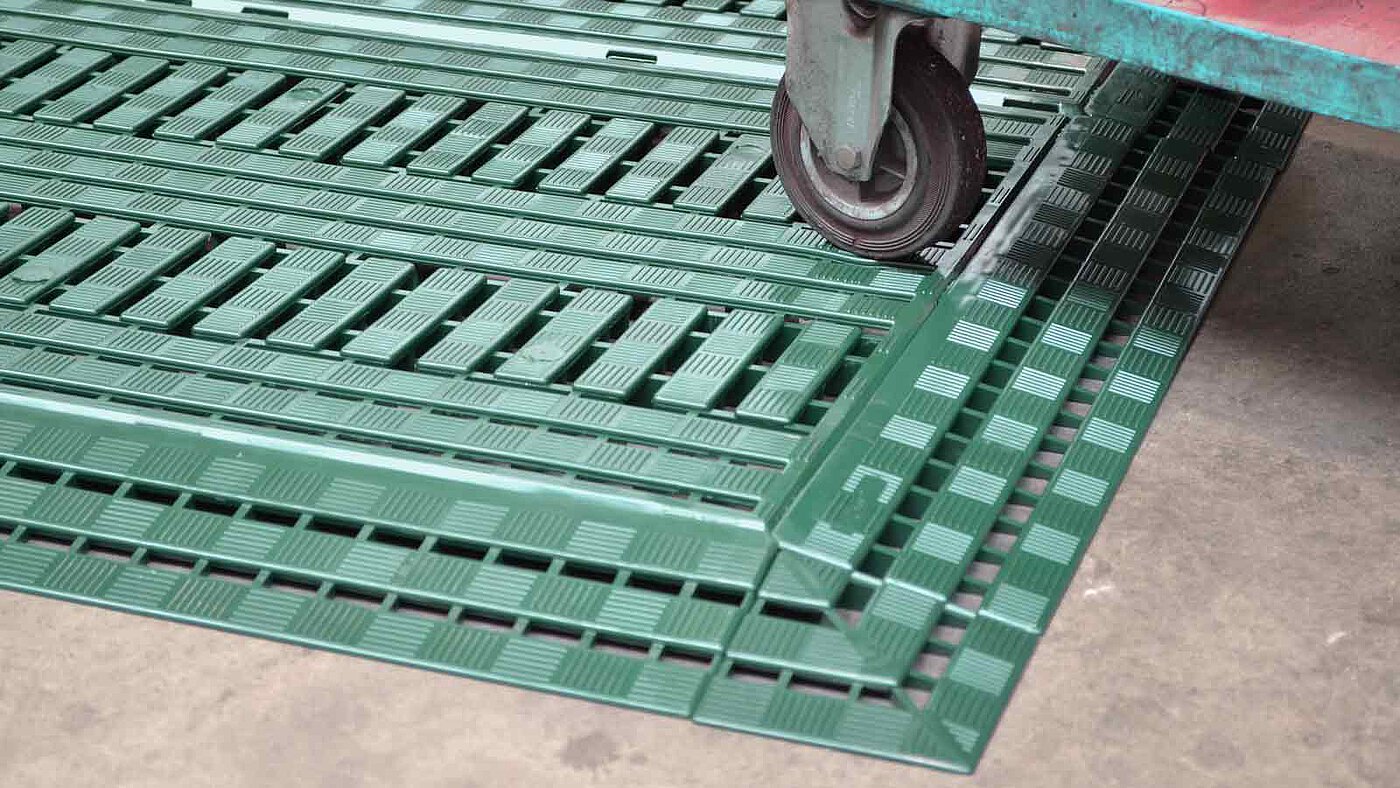 Der System-Bodenrost ist praxisorientiert, ausgereift und hat sich im langjährigen Betriebseinsatz sehr bewährt. Seine schnelle und einfache Verlegbarkeit in Längs- und Querrichtung ermöglicht ein schnelles Erstellen großer Flächen.