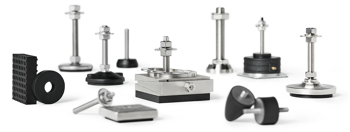 A broad range of products for vibration dampening, vibration isolation and levelling of machine tools, grinding machines, presses, punches, compressors, HVAC-devices and machine gear of all kinds, as well as passive isolation of metrology gear. Custom solutions and modifications as per customer requirement, e.g. level increase of our precision wedge mounts with additional steel plates, are always possible due to our vast manufacturing depth.