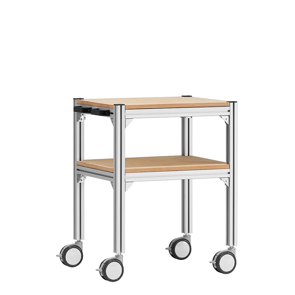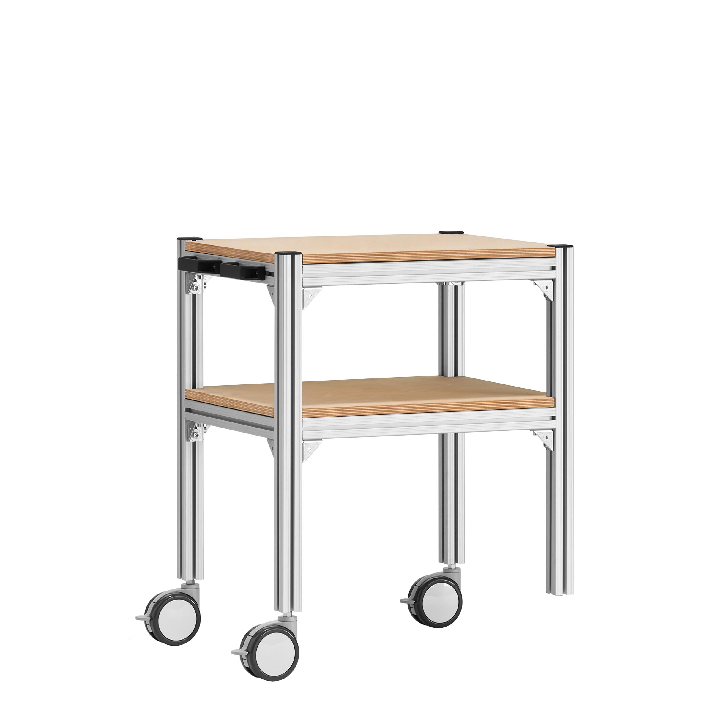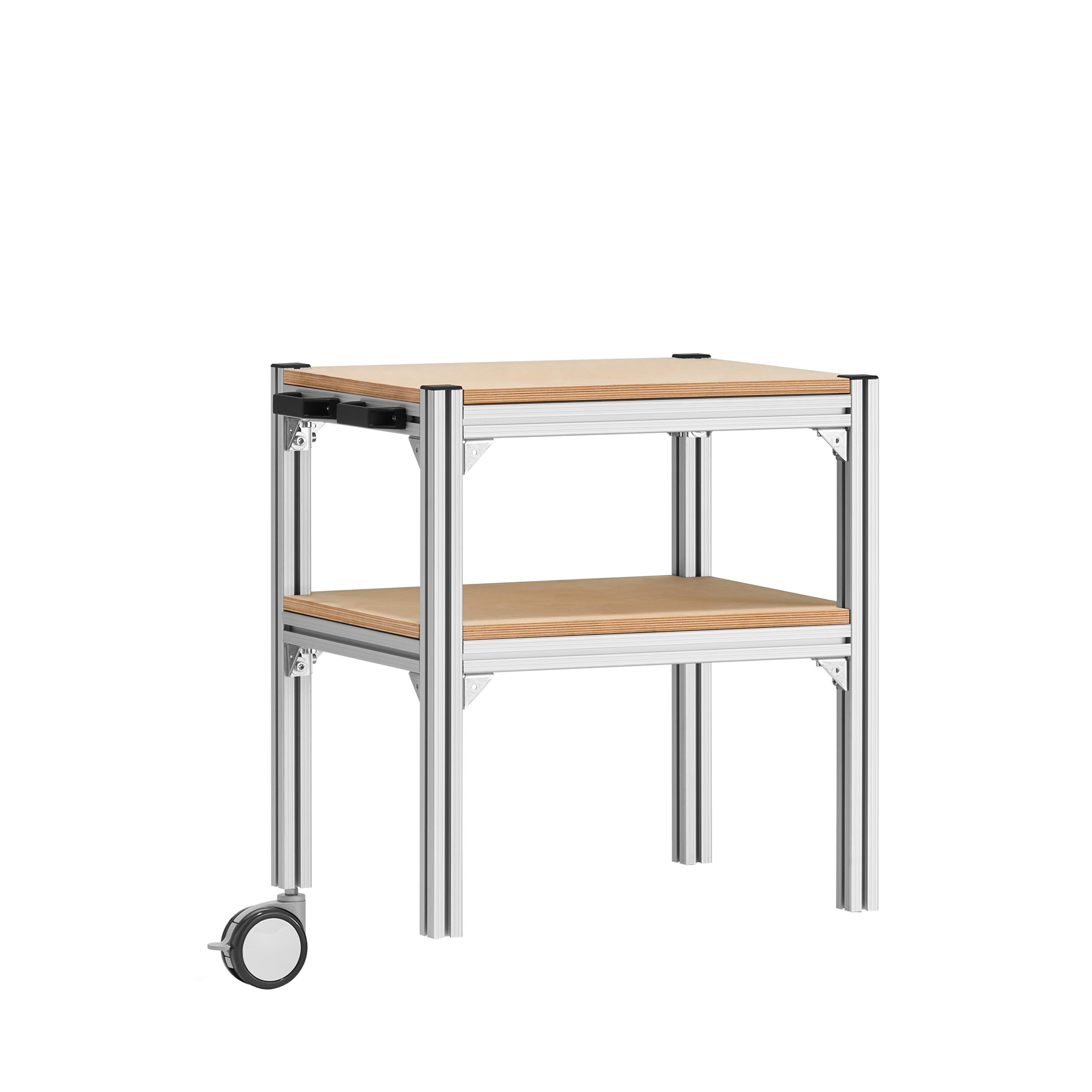 A large array of accessories allows for applying the aluminium profiles in a multitude of combinations, as shown here exemplary with this customer project of an individually customized ( in means of size, height and functionalities ) work trolley, aka 'personal trolley' - even upgrades / extensions / re-design / replacements of existing projects are possible with little strain on time and money.