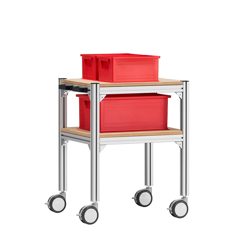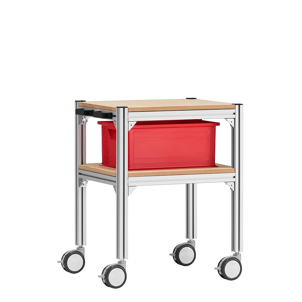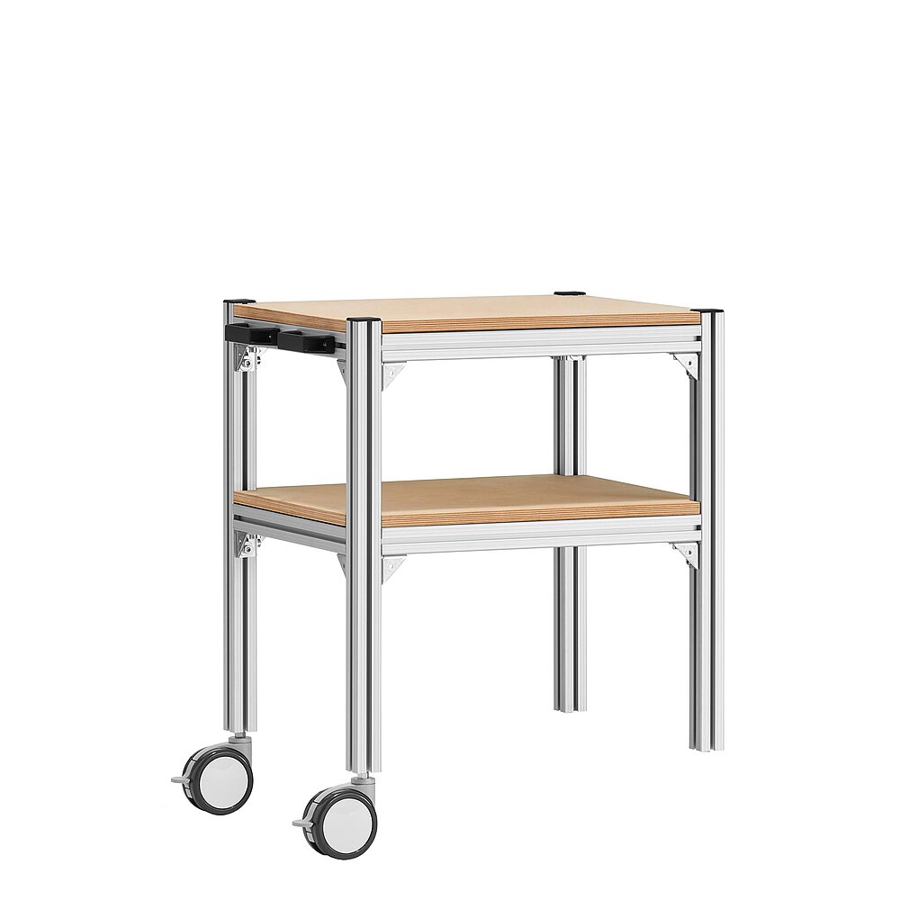 A large array of accessories allows for applying the aluminium profiles in a multitude of combinations, as shown here exemplary with this customer project of an individually customized ( in means of size, height and functionalities ) work trolley, aka 'personal trolley' - even upgrades / extensions / re-design / replacements of existing projects are possible with little strain on time and money.