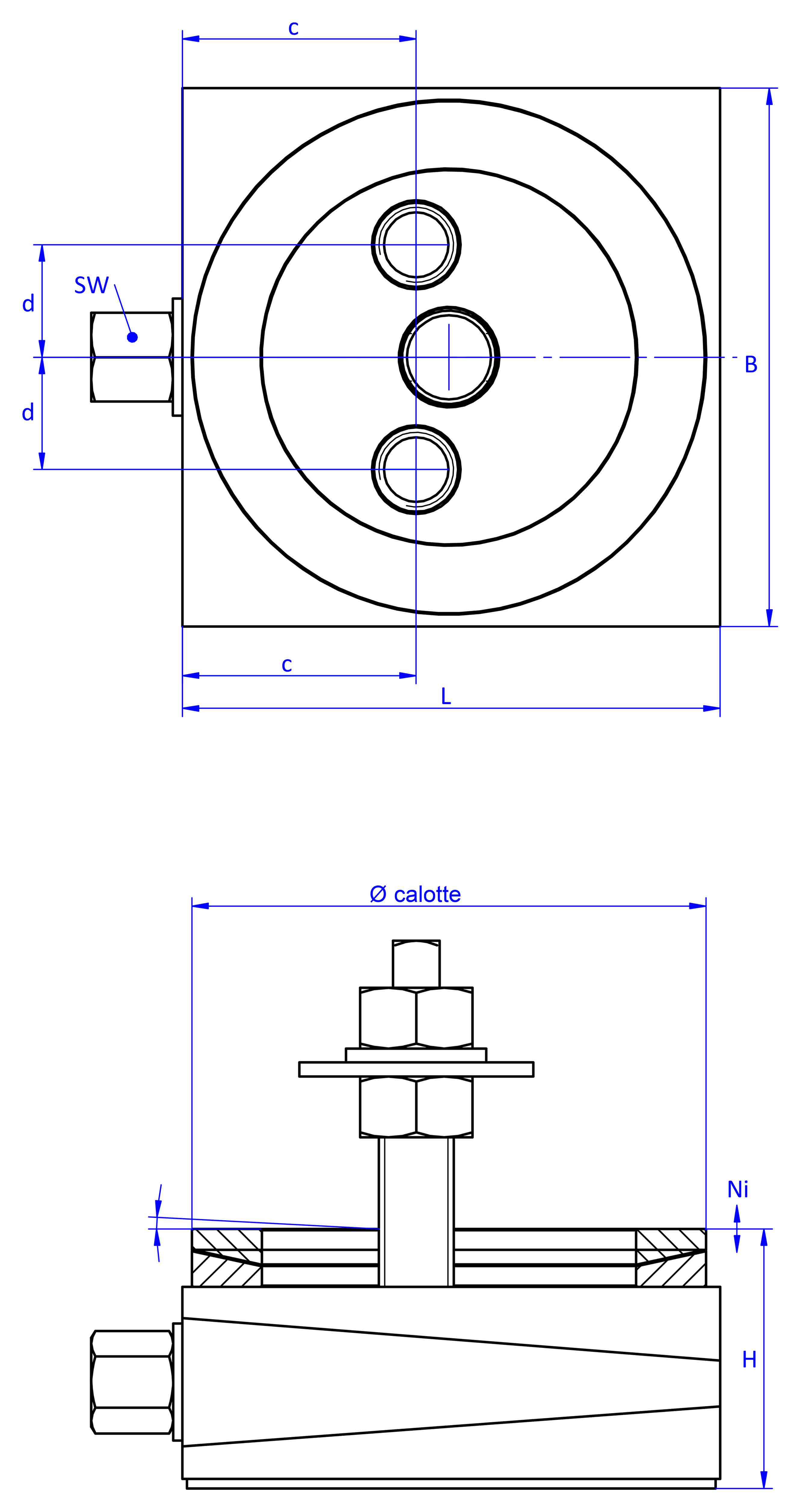 typearticle numberload (daN)L (mm)B (mm)H (mm)Ni (mm)SW (a/i)c (mm)d (mm)thread (bolt-on bottom)calotte (Ø mm)mass (kg)