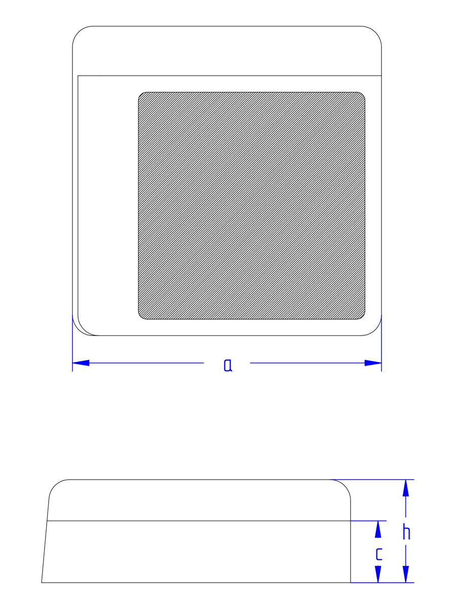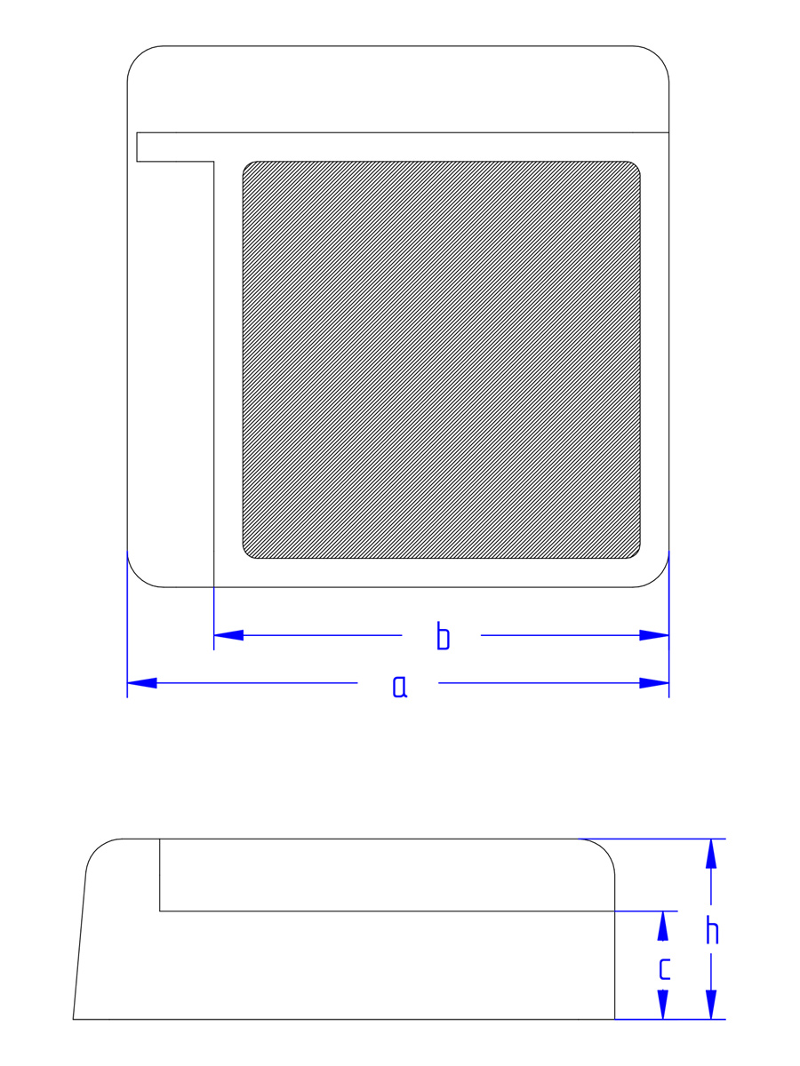 BezeichnungArtikelnummera(mm)b(mm)c(mm)h(mm)Shore A° +/- 5Belastung max.(daN)