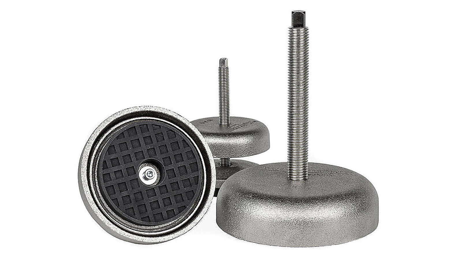 Unsere Glocken-Nivellierelemente finden Anwendung in Pressen, Stanzen, Kunststoffspritzmaschinen, Werkzeugmaschinen, CNC-Zentren usw. Dieser Elementtyp ist besonders dort geeignet, wo eine große Auflagefläche zwischen schwingungsdämpfendem Element und Maschinenrahmen gefordert wird.