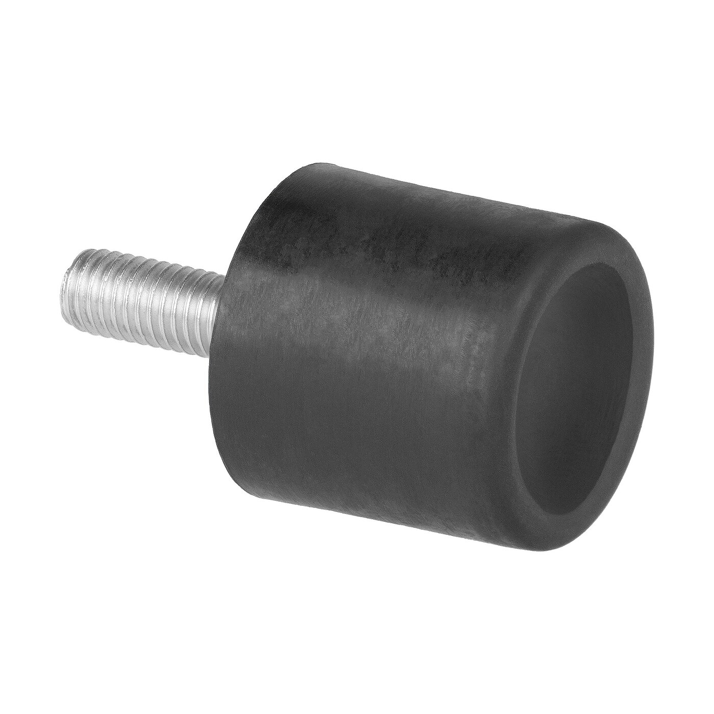 ein Gummi-Metall-Element mit einseitigem Innengewinde und zylindrischem schwarzem Elastomerkorpus, freigestellt auf weißem Hintergrund