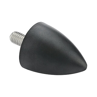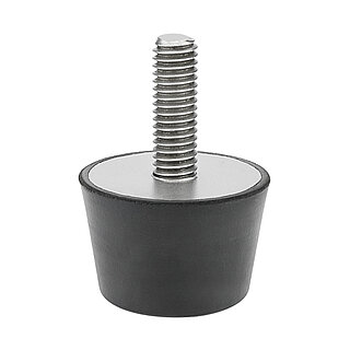 ein Gummi-Metall-Element mit einseitigem Außengewinde und schwarzem konischen Elastomerkorpus, freigestellt auf weißem Hintergrund