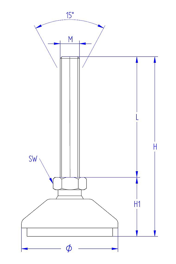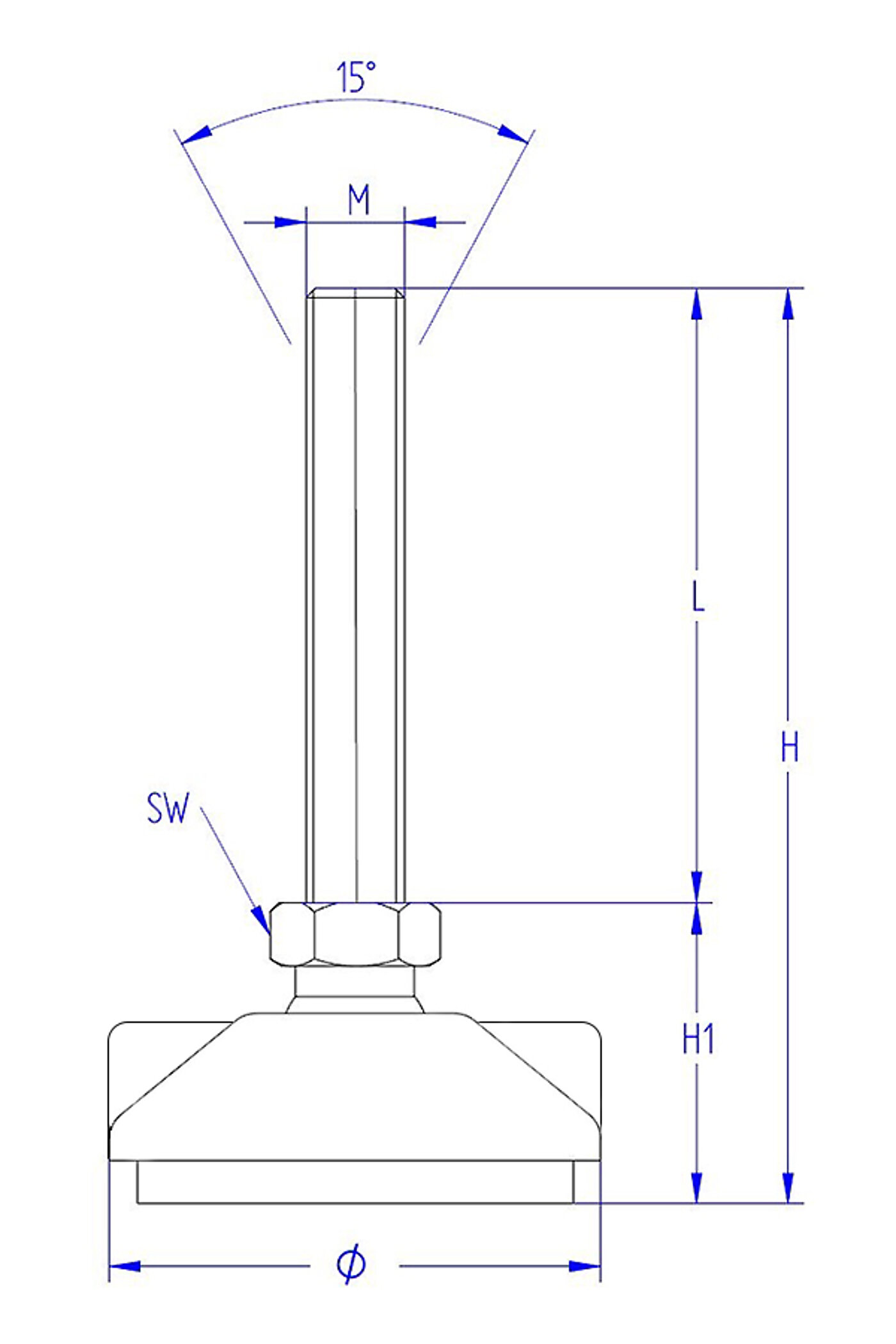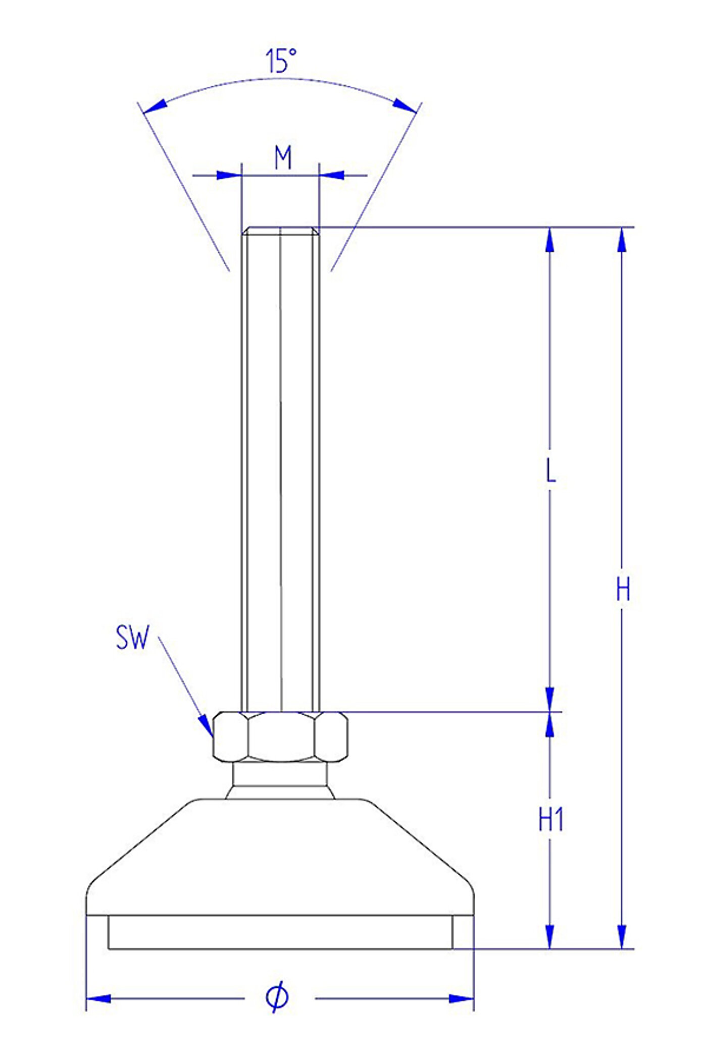 Längenangabe L der Nivellierschraube bezieht sich auf die Gewindenutzlänge.