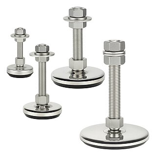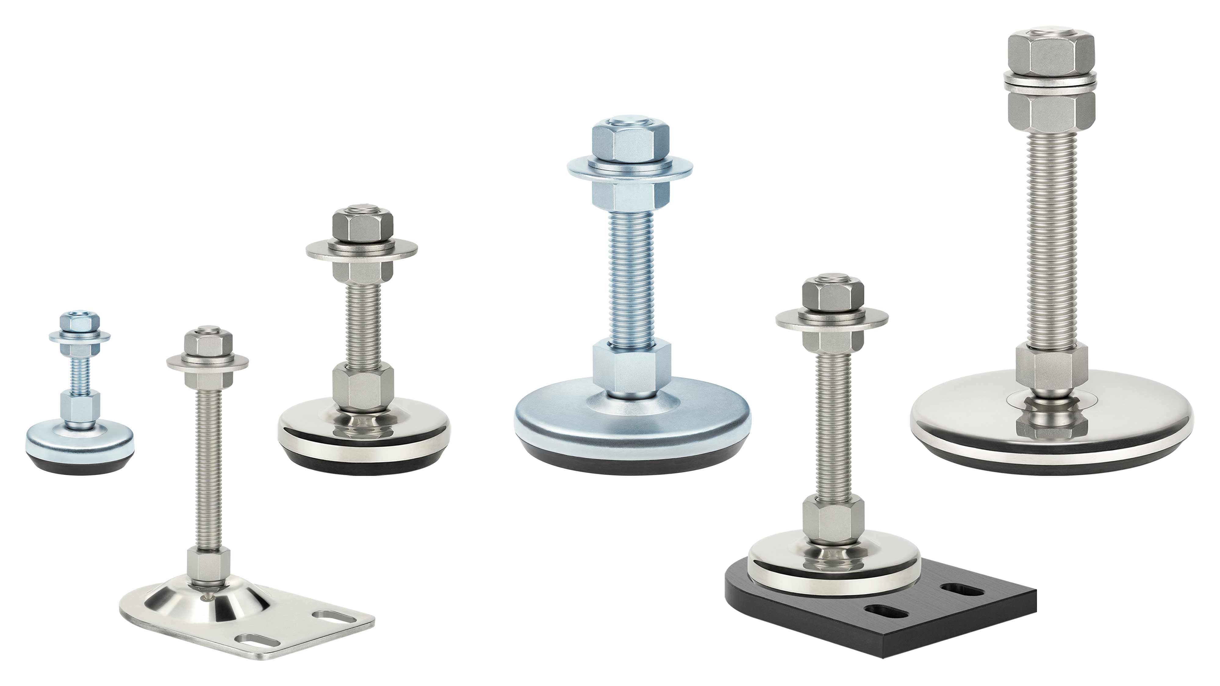 Universell einsetzbare Maschinenfüße mit Tellerdurchmessern von 52 mm bis 135 mm und Pendelung, z.B. in den Bereichen