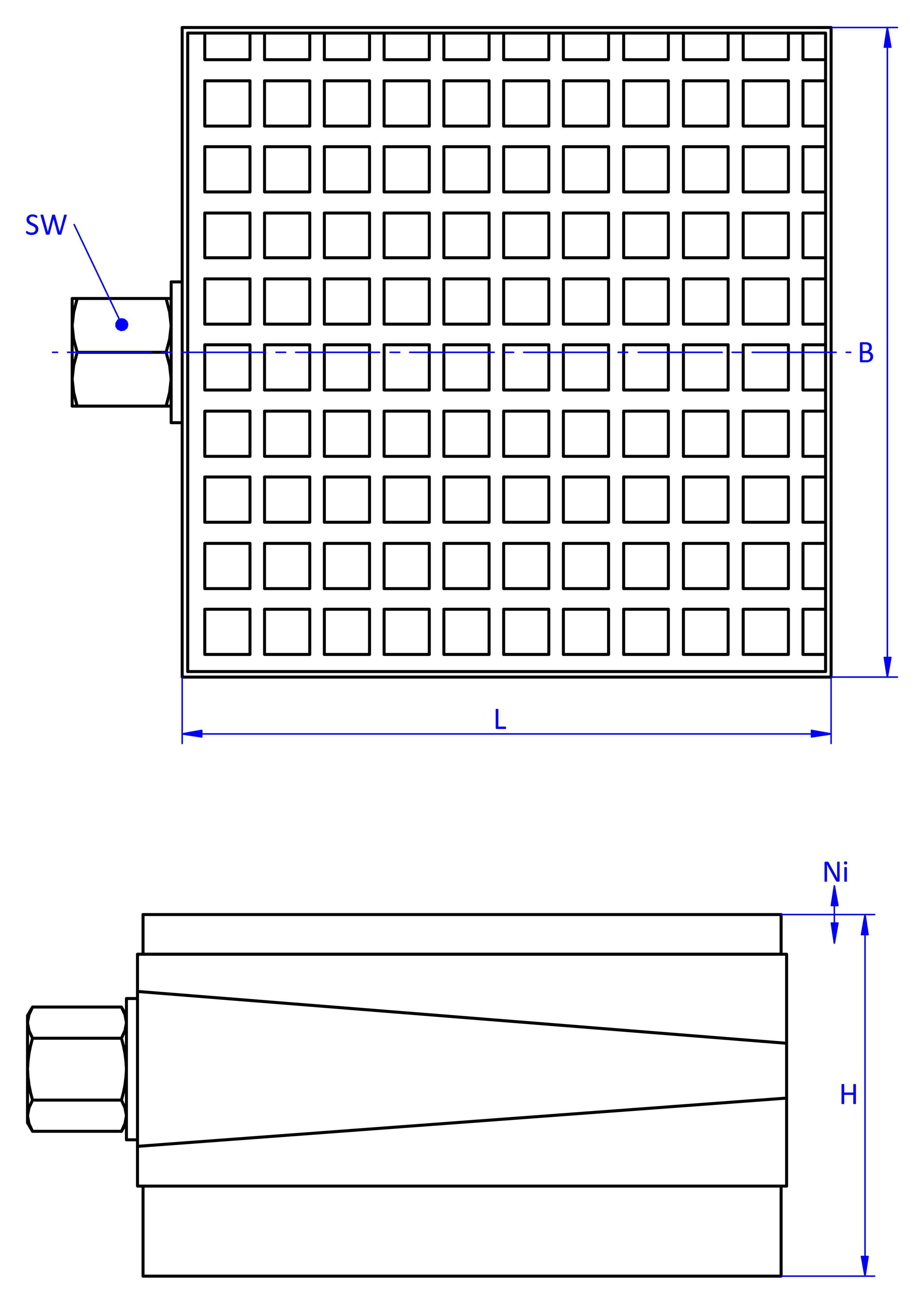 TypArtikelnummerBelastung (daN)L (mm)B (mm)H (mm)Ni (mm)SW (a/i)Masse (Kg)