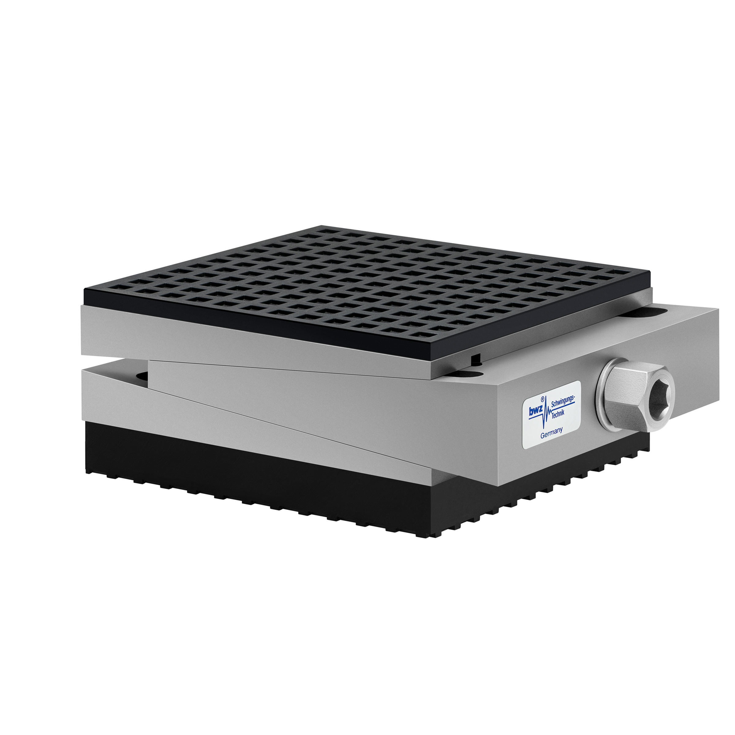 Die Präzisionskeilschuhe freistehend (FS) sind vorgesehen für ein einfaches Unterlegen. Sie bestehen aus 3 lose aufeinander liegenden Keilsegmenten. Anwendungsabhängig sind Ober- und Unterseite mit Dämpfungs- und Gleitschutzplatten in unterschiedlicher Shorehärte und optionaler Profilierung bestückt. In der Einbaulage gehört die dünnere Platte nach oben zum Maschinenrahmen.