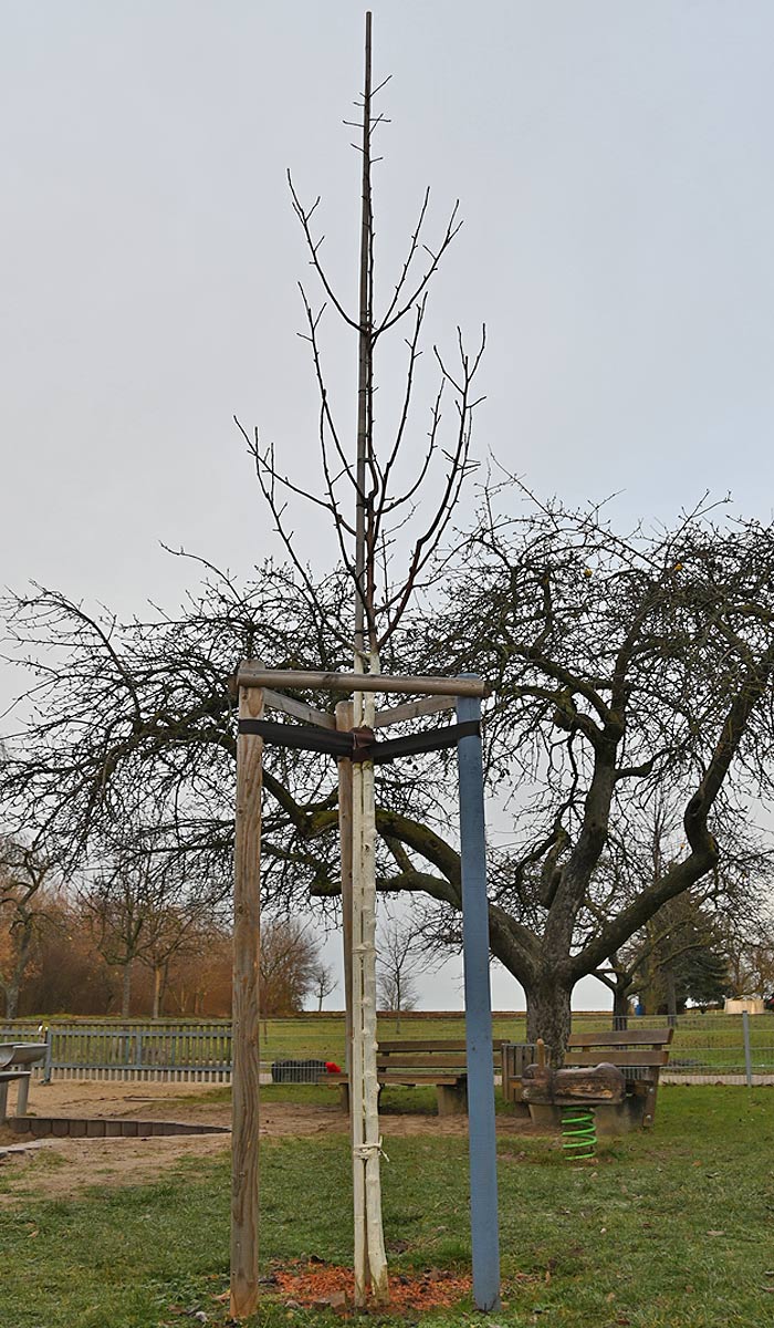 Auf der Webseite der Stadt Ostfildern konnte man interaktiv die verschiedenen Baumstandorte ansehen, und sich eine Pflanze aussuchen. Unsere Wahl fiel auf einen Apfelbaum auf einem Spielplatz in Ostfildern-Nellingen, und auf einen weiteren Vertreter der Spezies malus domestica auf einem Spielplatz in Ostfildern-Ruit. Die Pflanzungen fanden durch das Ostfilderner Grünflächenamt im Laufe des Jahres 2020 statt, und die Plaketten der spendenden Bürger und Unternehmen wurden Ende November 2020 angebracht. Wir hoffen, dass 'unsere' Bäume, aber natürlich auch alle anderen im Rahmen dieser Aktion gesetzten Pflänzlinge, gut anwachsen, kräftig austreiben, und künftigen Generationen körbeweise leckere und gesunde Äpfel schenken.