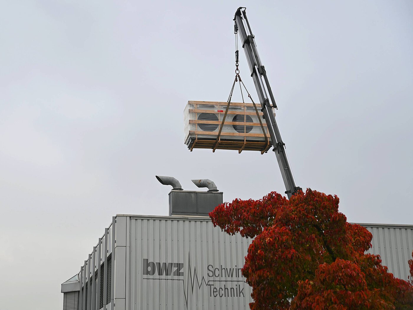 Und zwar aufs Betriebsdach zwecks Installation einer Luft-Wärmepumpe neuester Generation, deren Außengerät auf eben jenem Dach ab sofort seinen Dienst verrichtet. Die alte Quelle unserer Gebäudeheizwärme war - wie in so vielen Bestandsgebäuden - eine klassische, in die Jahre gekommene Gastherme.