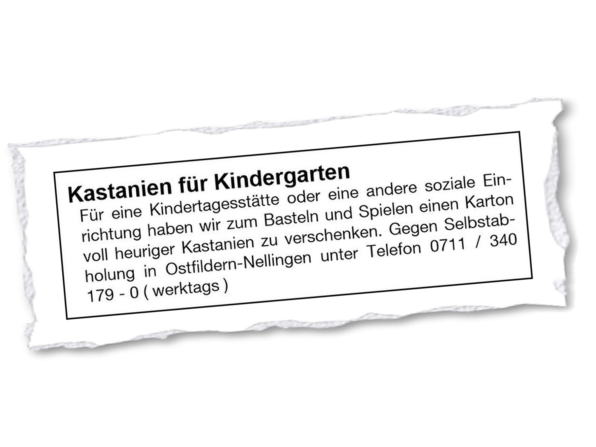 Daher hatten wir in den letzten Wochen allesamt - an dieser Stelle übrigens auch ein Dankeschön vom Chef an das ganze bwz Team - mit stets scharfem Blick nach den kleinen, bis in die hintersten Ecken rollenden Schlawinern rund um unsere Kastanienbäume Ausschau gehalten und insgesamt über 5 Kilogramm im weidenen Sammelkorb am Firmeneingang angehäuft. Ein lokaler Kindergarten hat auf unsere kostenfreie Kleinanzeige in der Stadtrundschau Ostfildern hin dieses 'Herbstgold' bekommen, und so wünschen wir allen Kindern dort nun viel Freude am Spiel und der Bastelei mit den Kastanien.