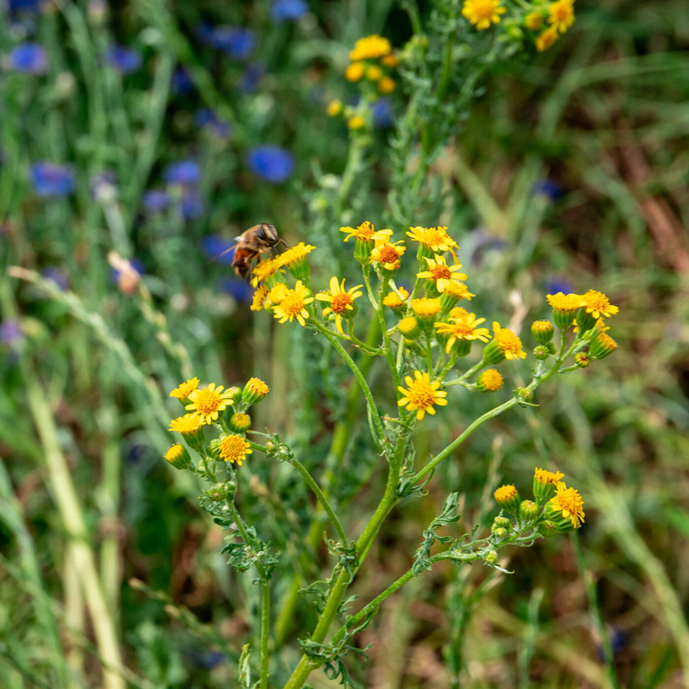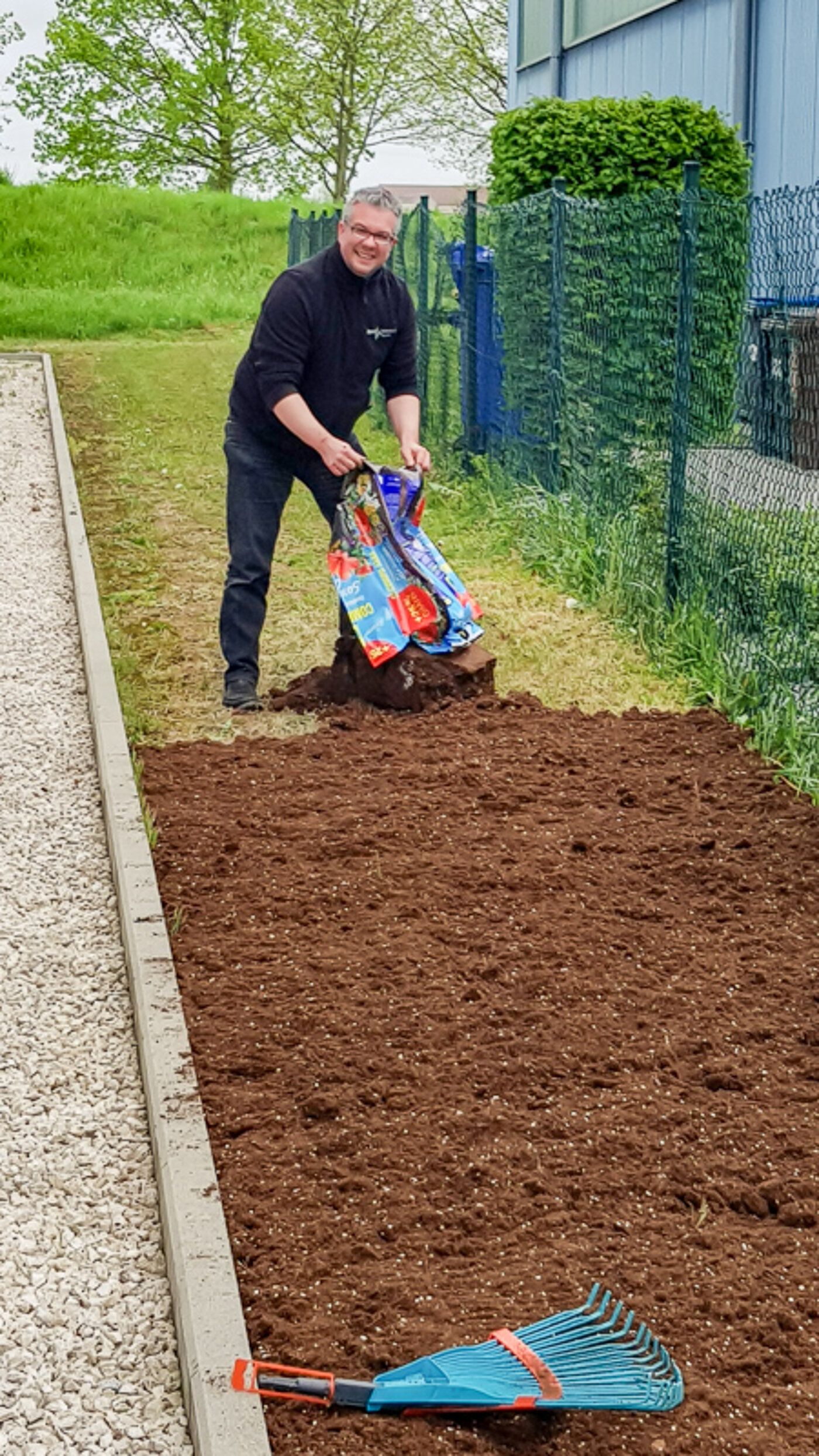 So hat unser Chef im April 2019 Jahres das 60 m² kleine Wies‘le neben unserer Fertigungshalle im Schweiße seines Angesichtes umgegraben, neue Erde ausgebracht, und verschiedene Samenmischungen für Bienen, Hummeln und Schmetterlinge eingearbeitet.